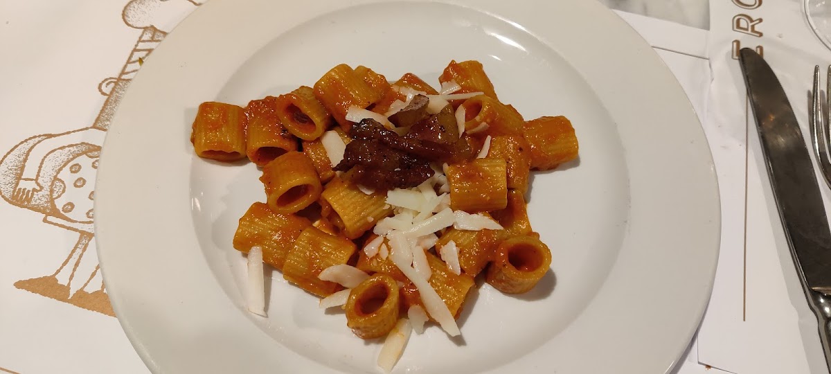 My husband and I, and our 3 month old daughter were wandering the streets of Trastevere looking for a bite to eat and happened upon Ercoli Trastevere. We walked in to a beautiful butchery counter and a welcoming staff, who gladly accommodated our infant daughter and early for Rome dinner needs. They sat us in a nice open room with a comfortable banquet and we quickly recognized that most of the other diners were either locals, or on a food tour. We ordered the beet hummus, rigatoni all’amatriciana, and the filet with roasted potatoes, all of which were cooked perfectly. One of the best all’amatriciana I have ever had. Tiramisu was to die for. Will definitely be back on one of our next trips!