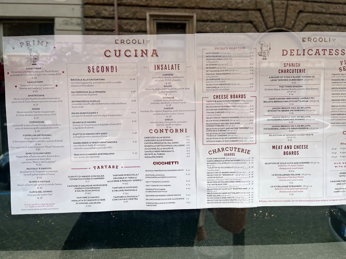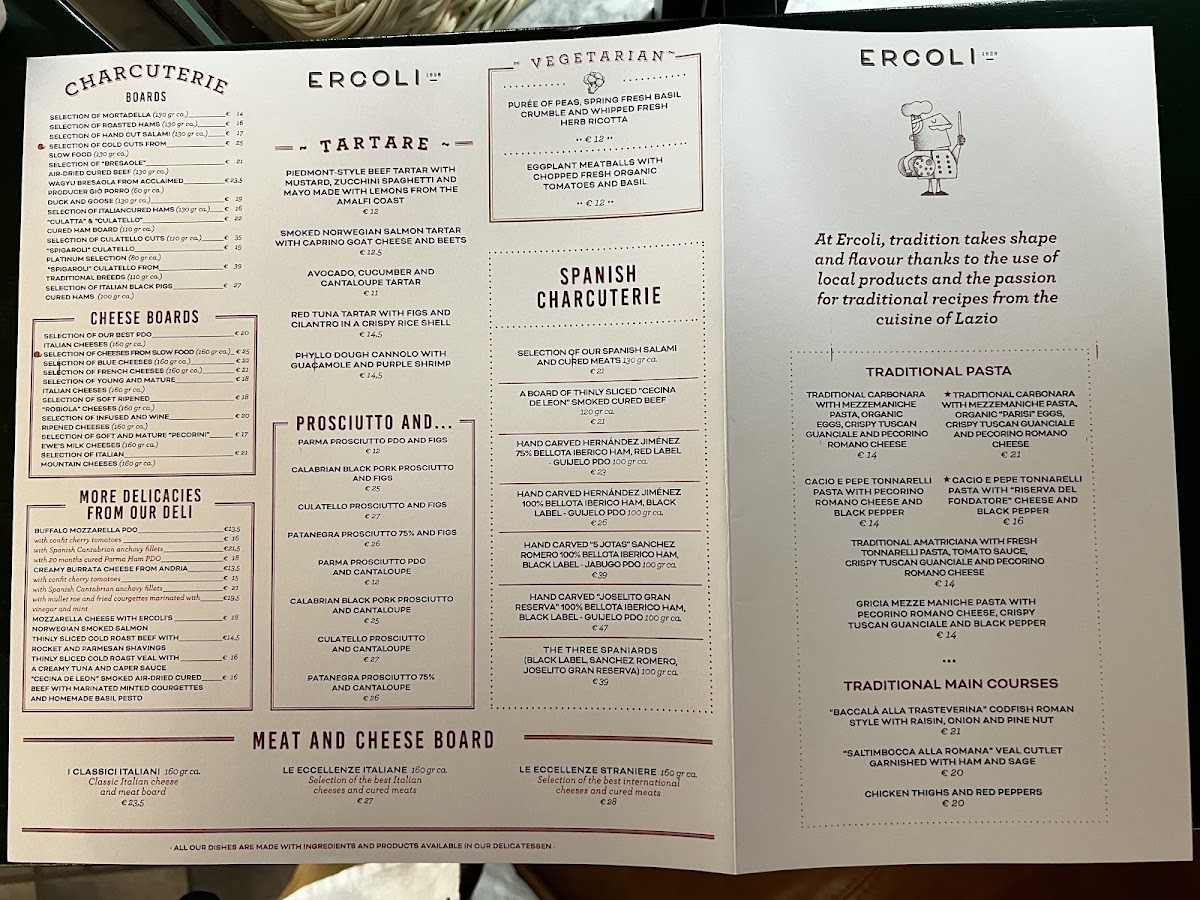 The menu at Ercoli Trastevere offers a balanced blend of traditional Italian dishes and thoughtfully crafted small plates, perfect for casual lunches, relaxed dinners, or a leisurely coffee break. Guests can enjoy comforting classics like Amatriciana and Carbonara di Mare, alongside fresh, lighter options such as Avocado Cucumber and Cantaloupe Tartar or a carefully assembled Charcuterie Board.